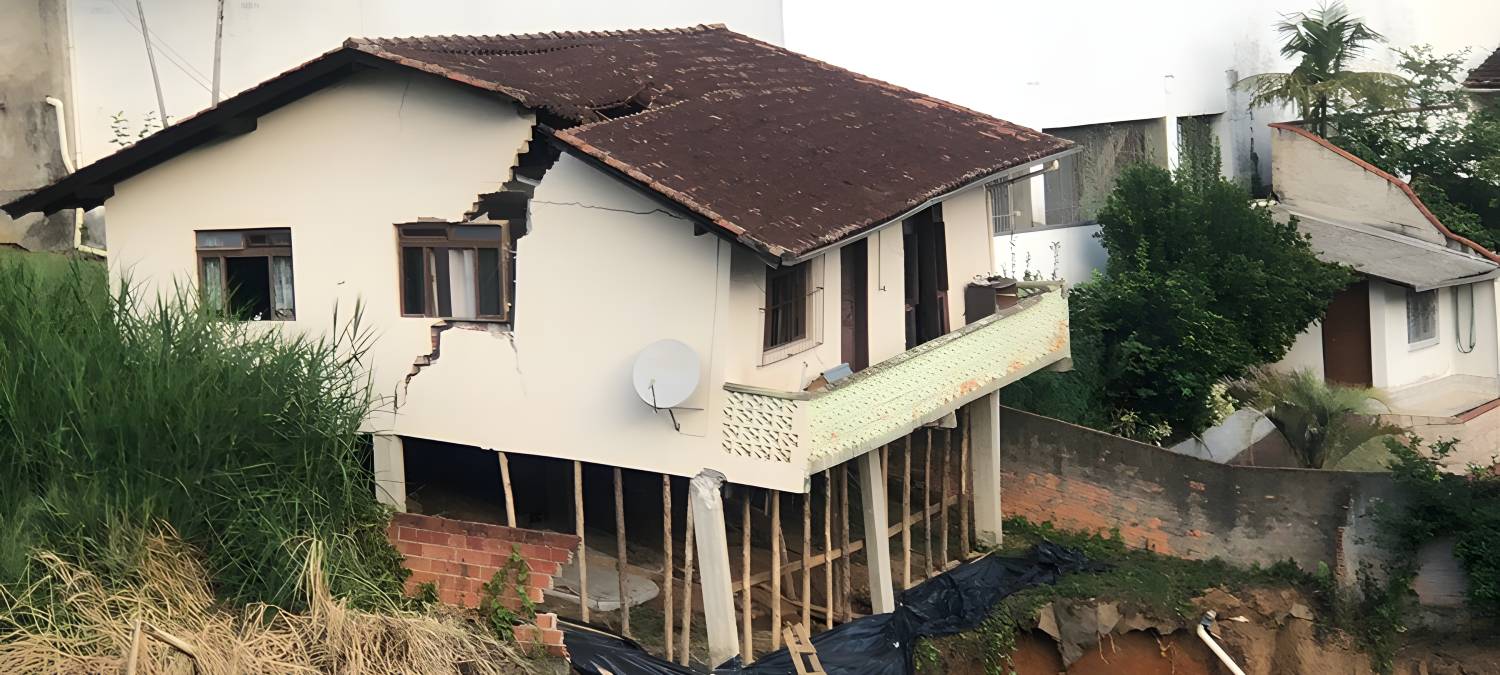 CASA RACHADAUma casa rachou ao meio na Rua Tomé Venera dos Santos, bairro Escola Agrícola. No terreno ao lado há uma escavação para a construção de um prédio. A família diz que desde 2024 alertou a construtora e a Defesa Civil sobre o perigo da obra. A obra foi embargada até que a responsável reconstrua a casa e construa um muro de contenção. (Mesorregional)
